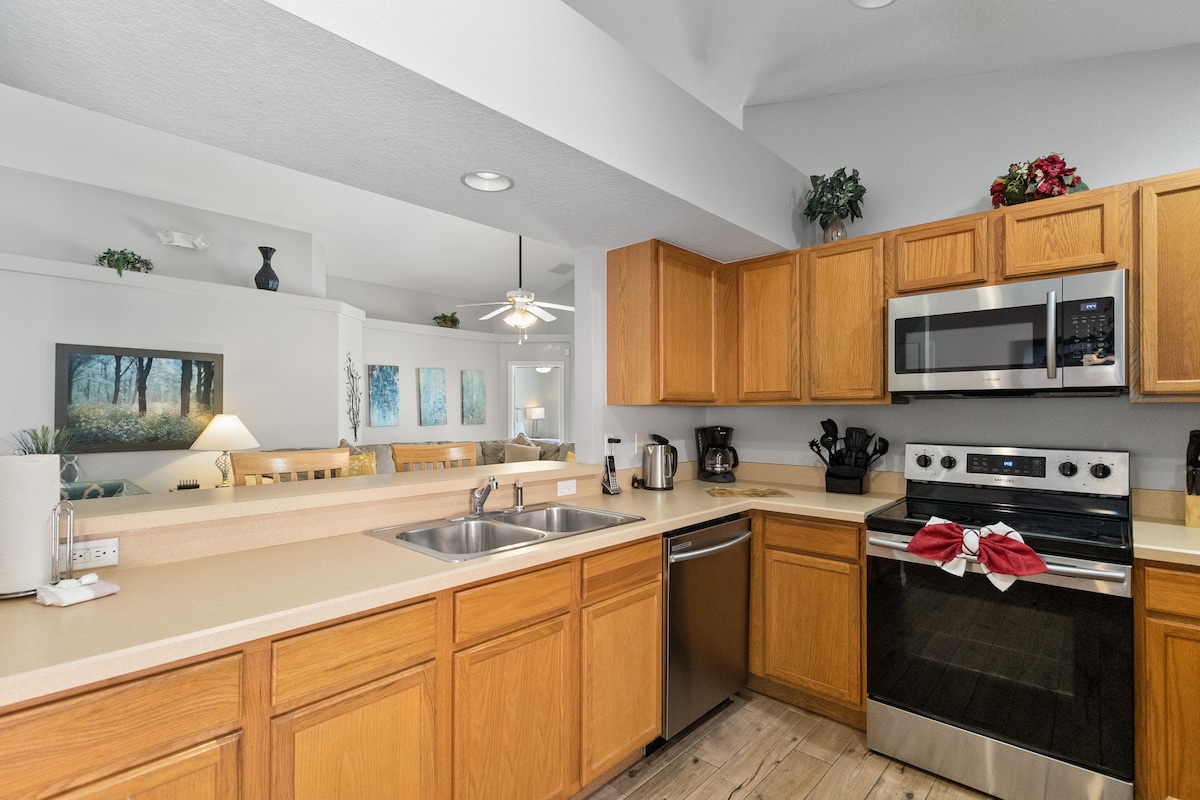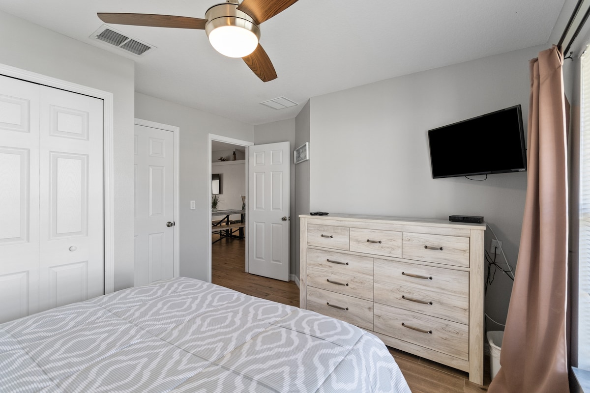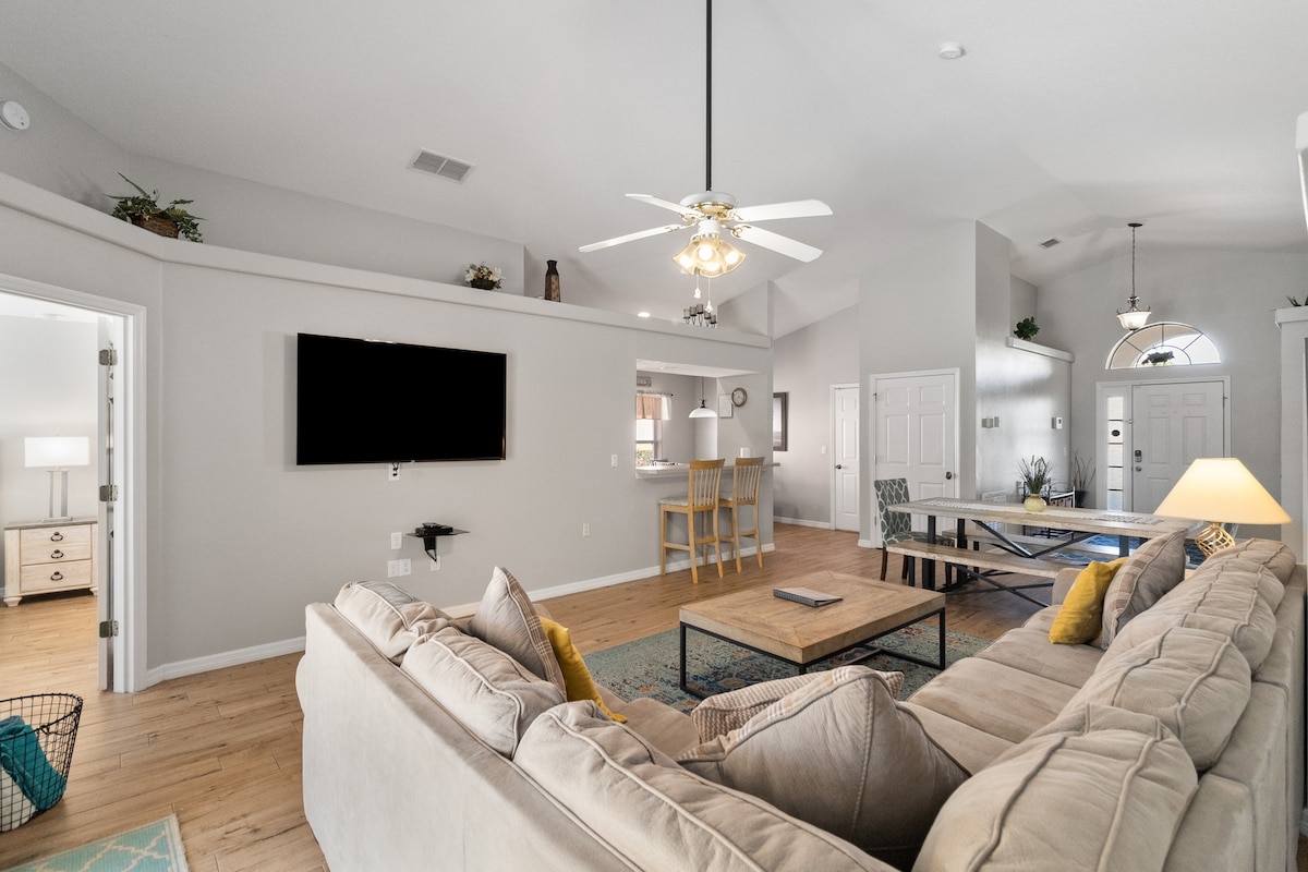 Immerse yourself in comfort at our expansive 4 bedroom, 3 bath home, perfect for families or groups. Boasting an open floor plan with two master suites, each featuring en-suite bathrooms and walk-in closets, this 1,700 sqft haven comfortably accommodates up to 8 guests.